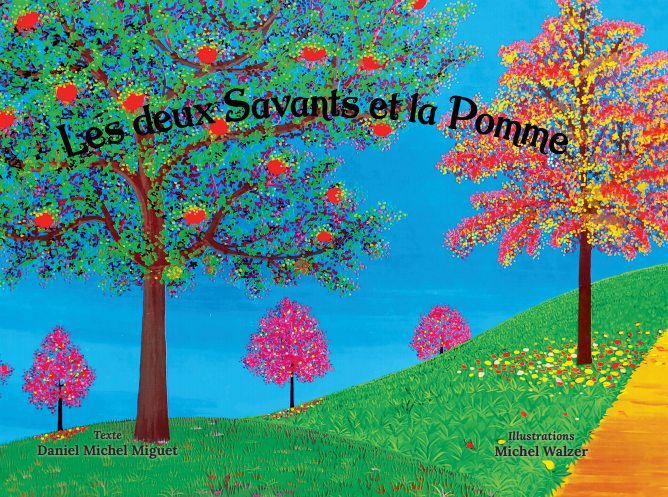 Bonjour à tous ! En avant première, après « La Souris et le Magicien », voici la couverture de mon second livre pour enfant, « Les deux savants et la Pomme », dont la finalisation est en cours. Les illustrations couleur sont aussi de mon ami Michel Walzer. https://walzer-peintre-naif.com/ La mise en page, conception de la maquette est entre les mains de Laure Nitorynk.www.lauremiguet.fr Un grand merci à tous les deux et à très bientôt pour vous le présenter une fois imprimé !